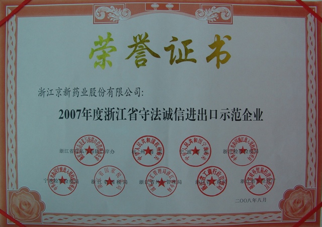 为树立遵法诚信收支口企业典范,推进收支口企业诚信系统建设,浙江省打私与海防口岸办、杭州海关、宁波海关、浙江磨练检疫局、宁波磨练检疫局、省国税局、省外汇治理局、省工商局、省外经贸厅团结在全省规模内开展了2007年度遵法诚信收支口树模企业推荐运动。经各市打私办与有关职能部分派合推荐,省级有关部分派合审核,宣布了2007年度浙江省遵法诚信收支口树模企业,我公司榜上著名。