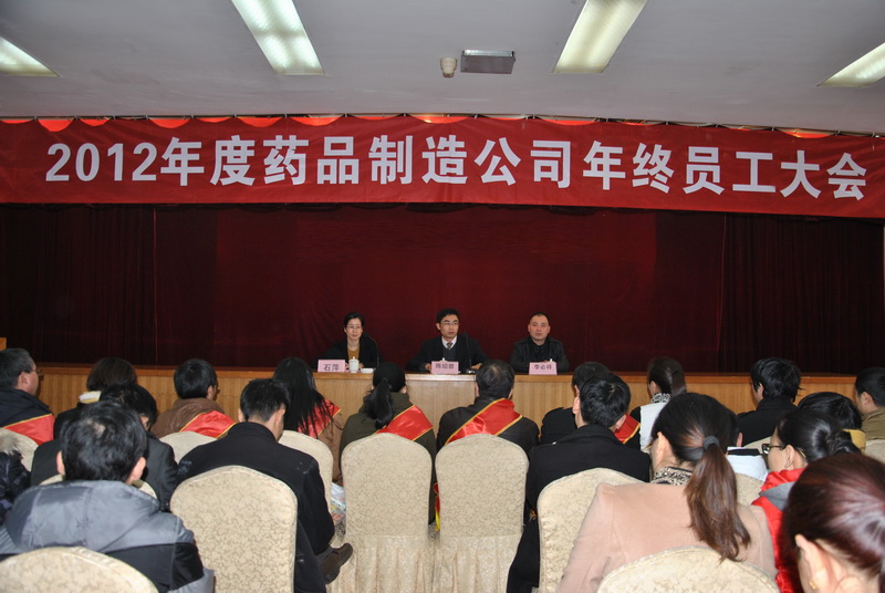 2013Äê1ÔÂ26ÈÕÏÂÖç£¬Ò©Æ·ÖÆÔ칫˾ȫÌåÔ±¹¤ÔÚвý±ö¹Ý¶þÂ¥ÕÙ¿ª2012Äê¶È±íÑï´ó»á¡£¾Û»áÓÉ×ۺϰìÖ÷ÈÎʯƼÖ÷³Ö¡£