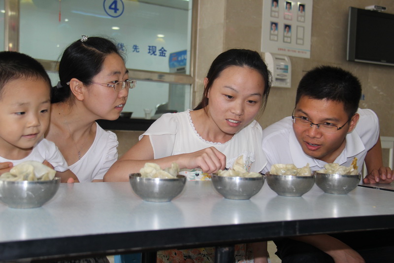 ÔÚÈÈÄÖµÄÎûЦÉùÖУ¬ÖÚÈËÒ»Æð·ÖÏíÇ×ÊÖ°ü³ÉµÄ½È×Ó£¡£¨ÕÅ Âü£©